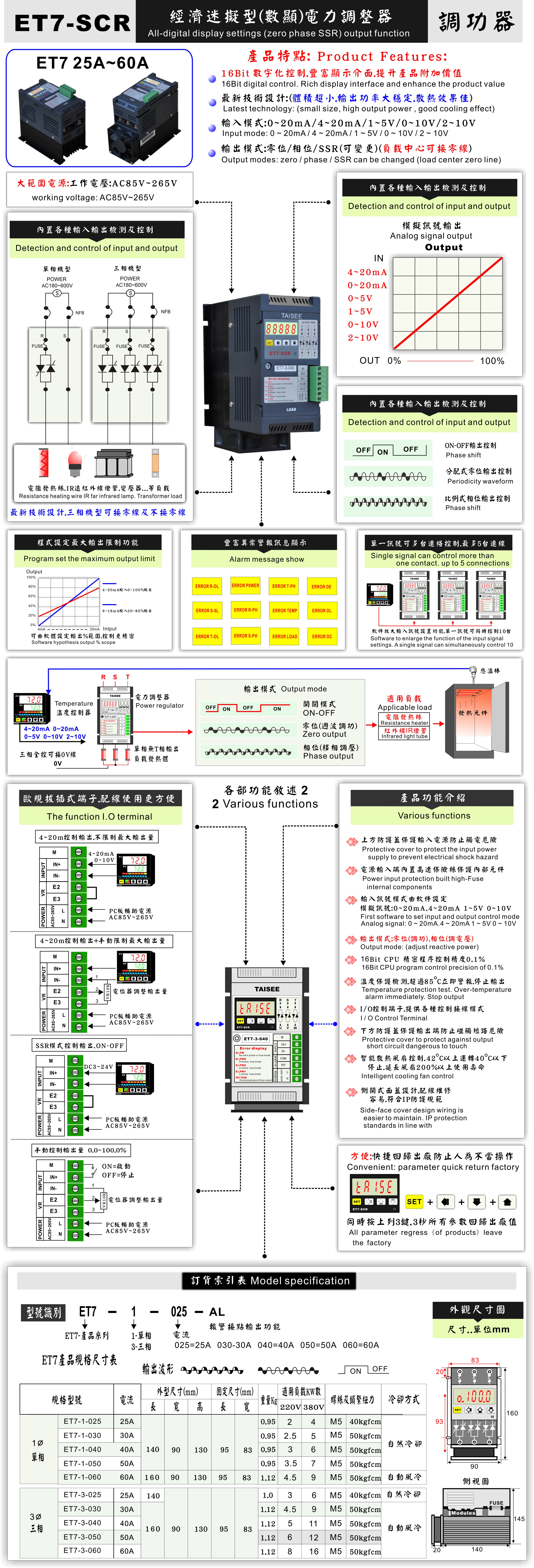 輸入模式:可變更/軟件方式變更 0~20mA/4~20mA/0~10V 輸出模式:可變更/軟件方式變更 三相.負(fù)載中心可接零線 零位.相位
